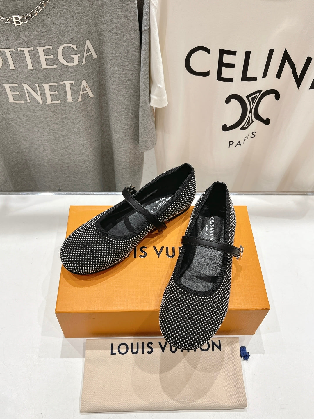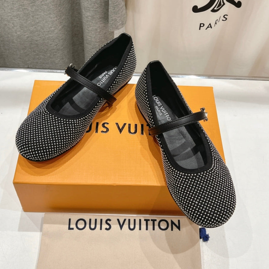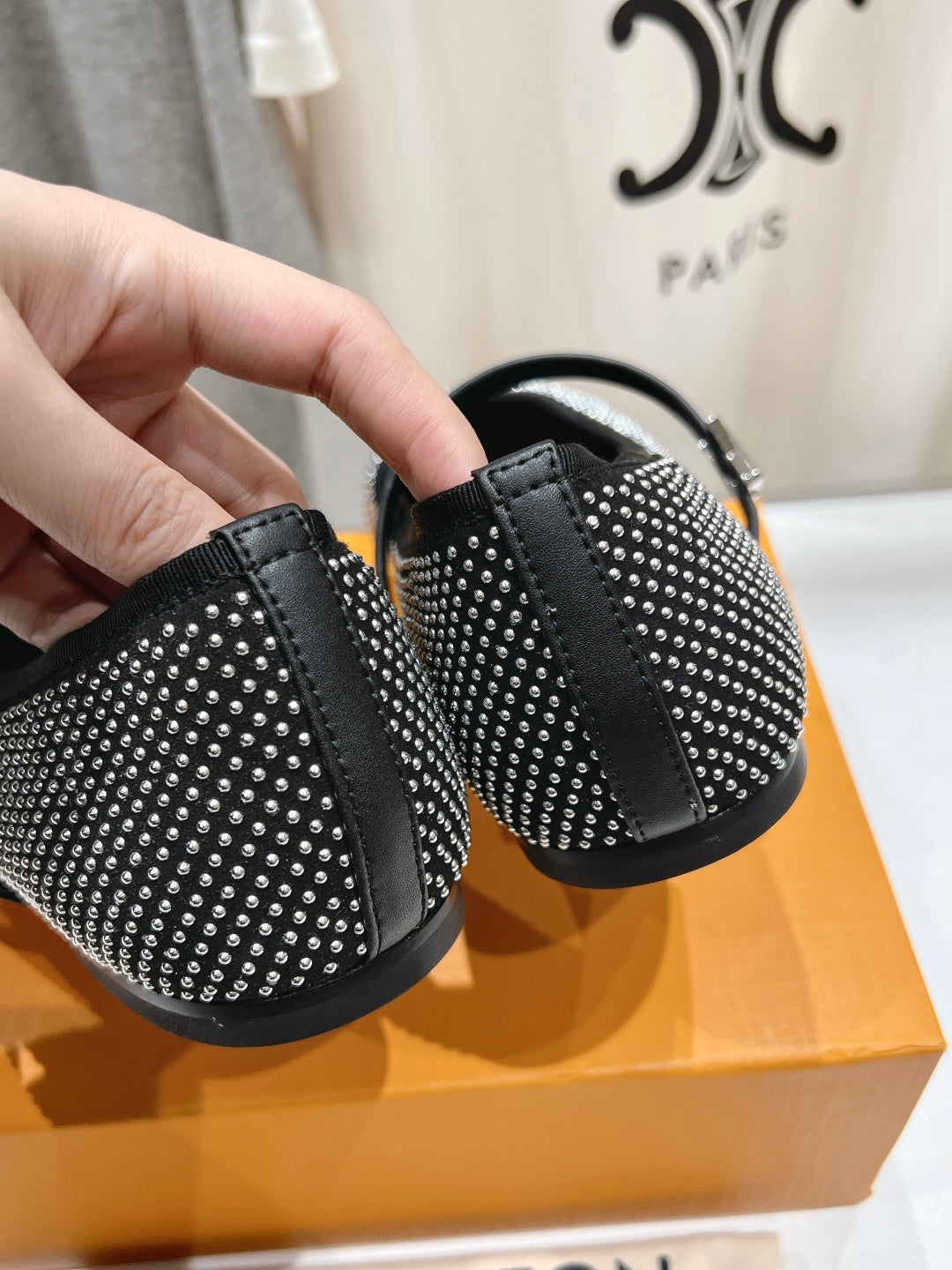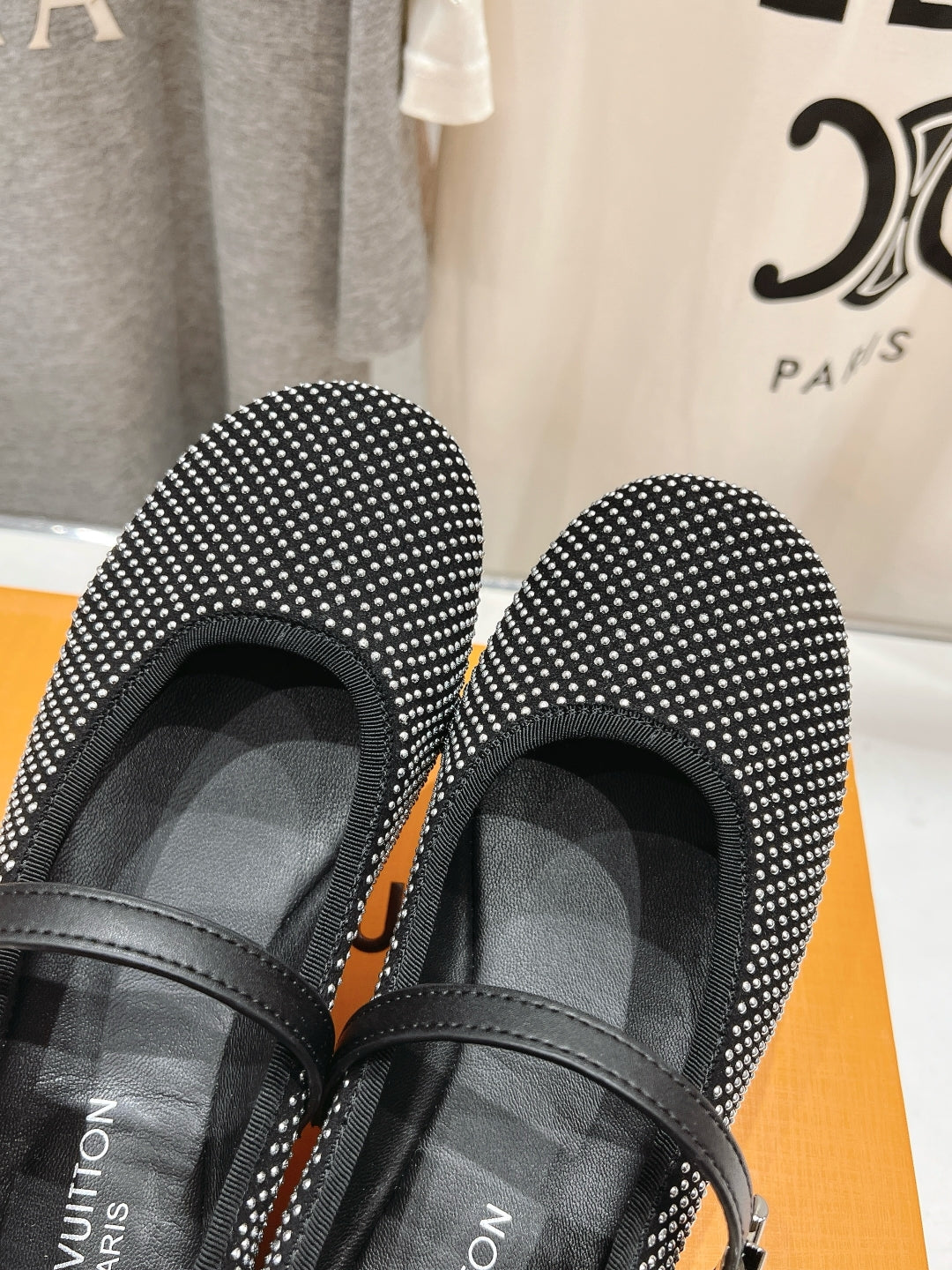 ROMY FLAT BALLERINA IN BLACK LAMBSKIN EMBELLISHED SILVER-TONED STUDS