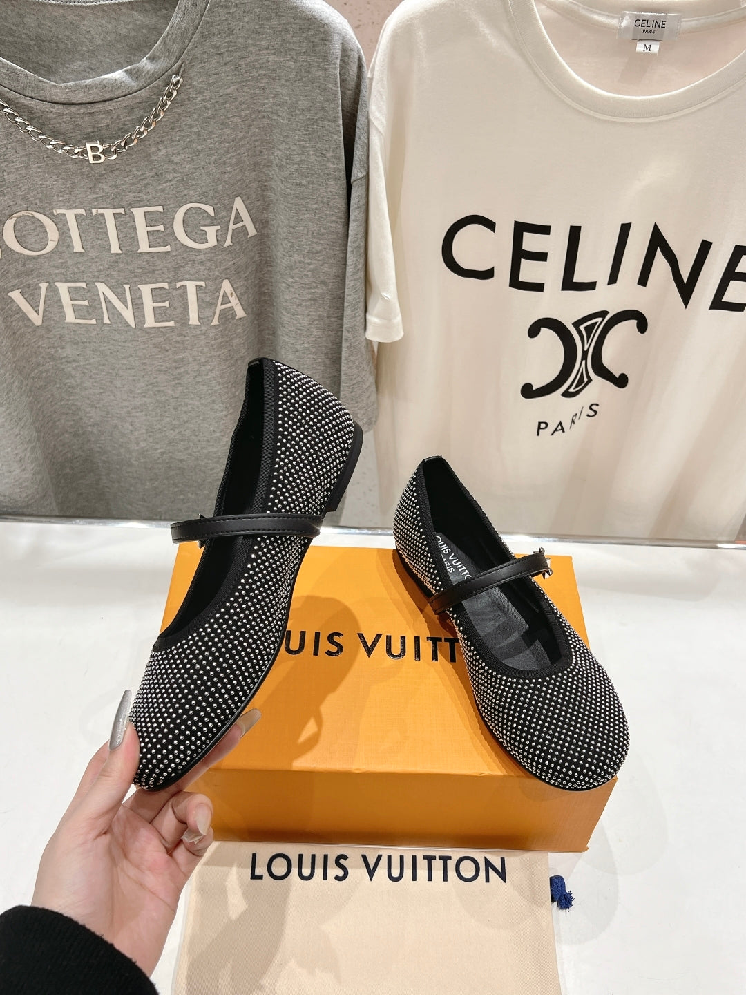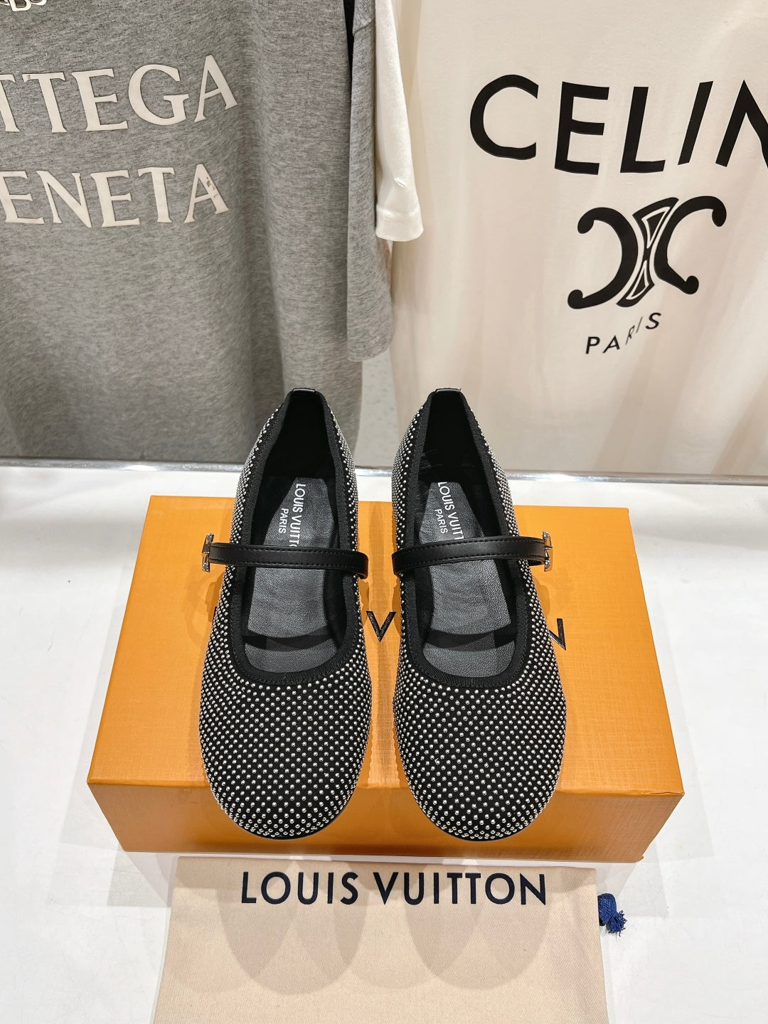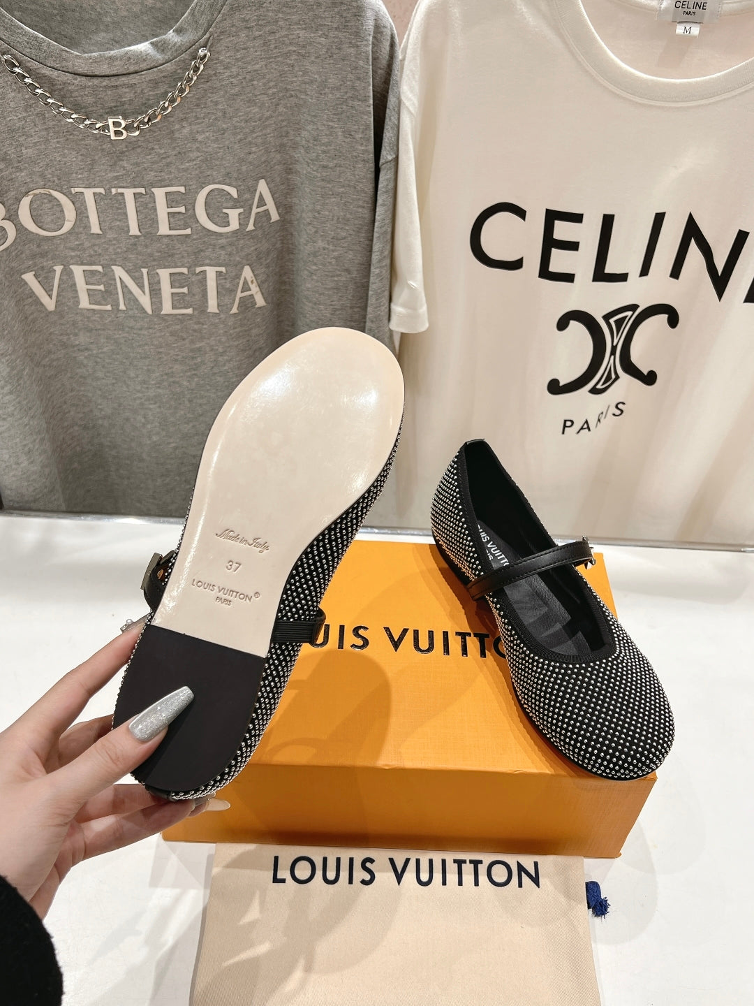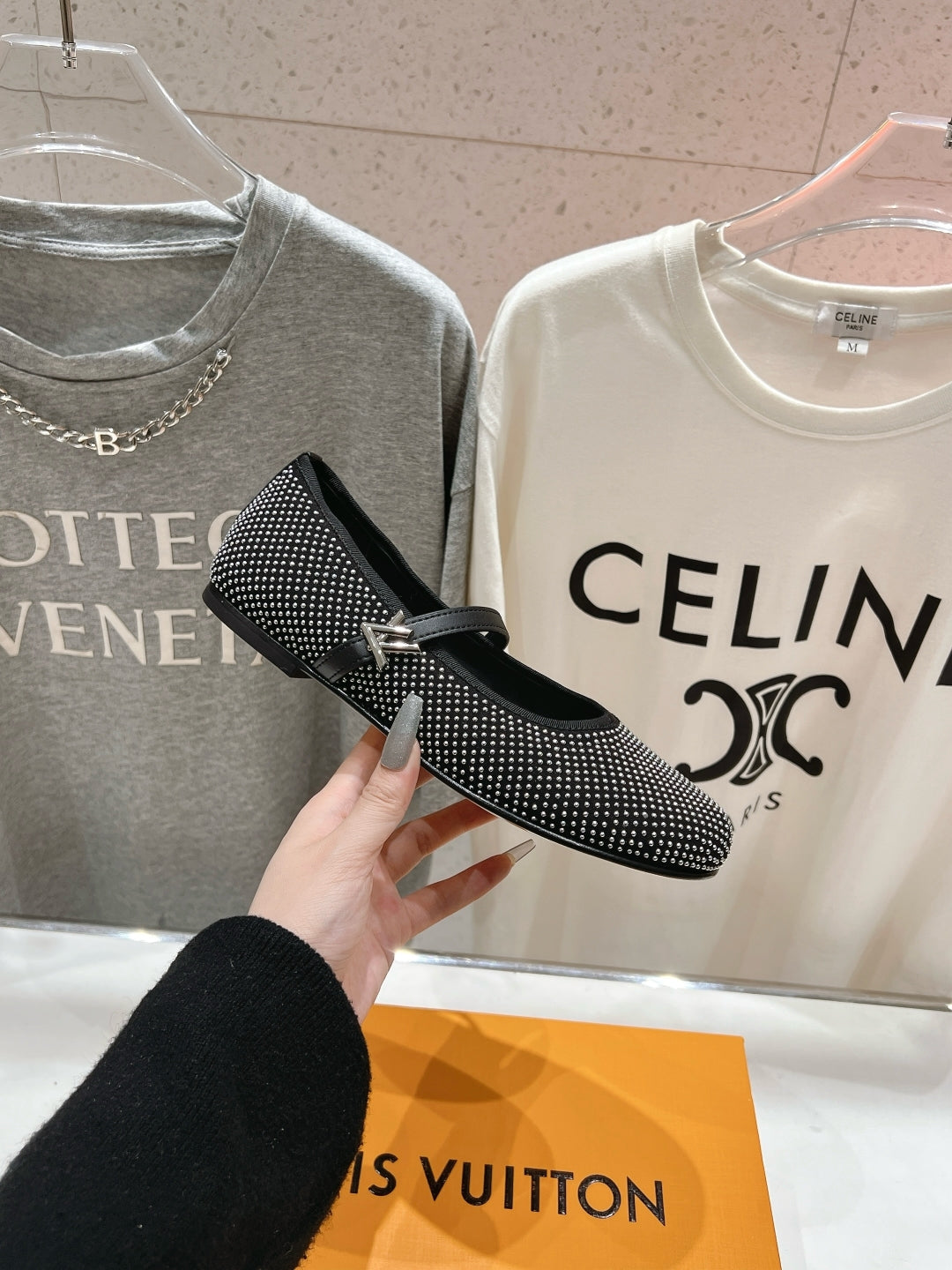 ROMY FLAT BALLERINA IN BLACK LAMBSKIN EMBELLISHED SILVER-TONED STUDS