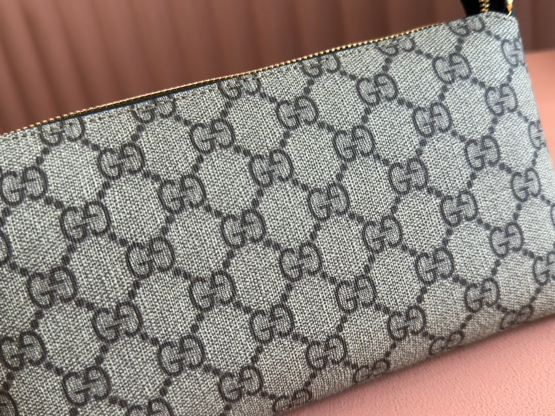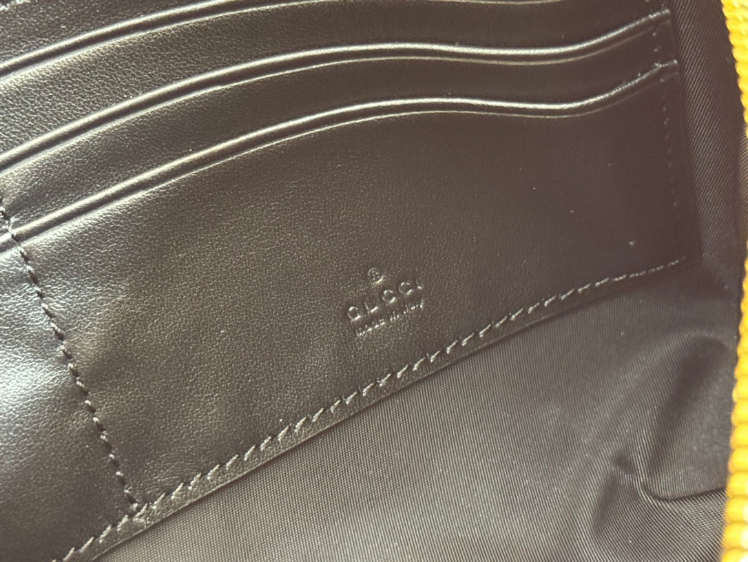RUBBER EFFECT SMALL WALLET ON CHAIN 22.5 IN BEIGE AND DARK BROWN GG CALFSKIN