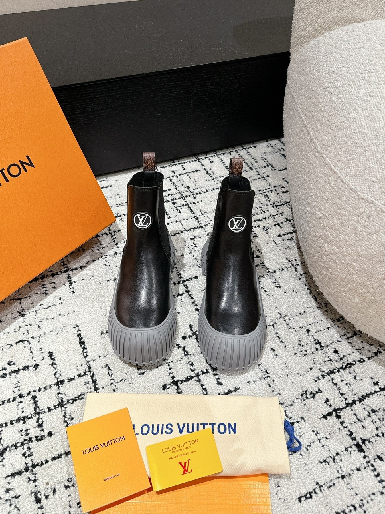 RUBY BOOTS IN BLACK AND CLOUD GRAY CALFSKIN