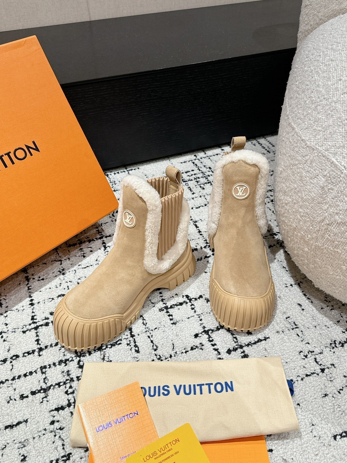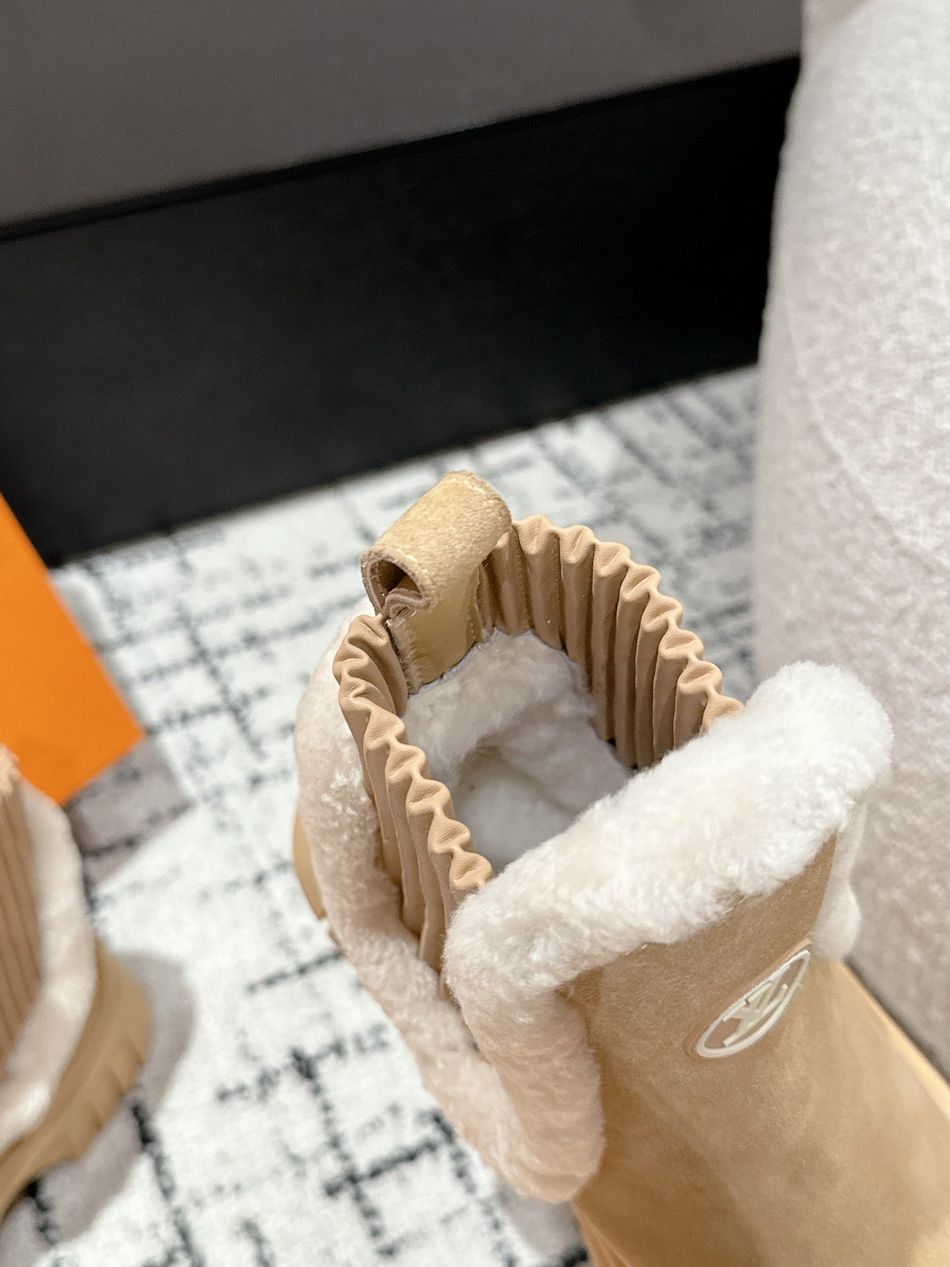 RUBY FLAT ANKLE BOOT IN TORTILLA BROWN SUEDE WITH WHITE SHEARLING