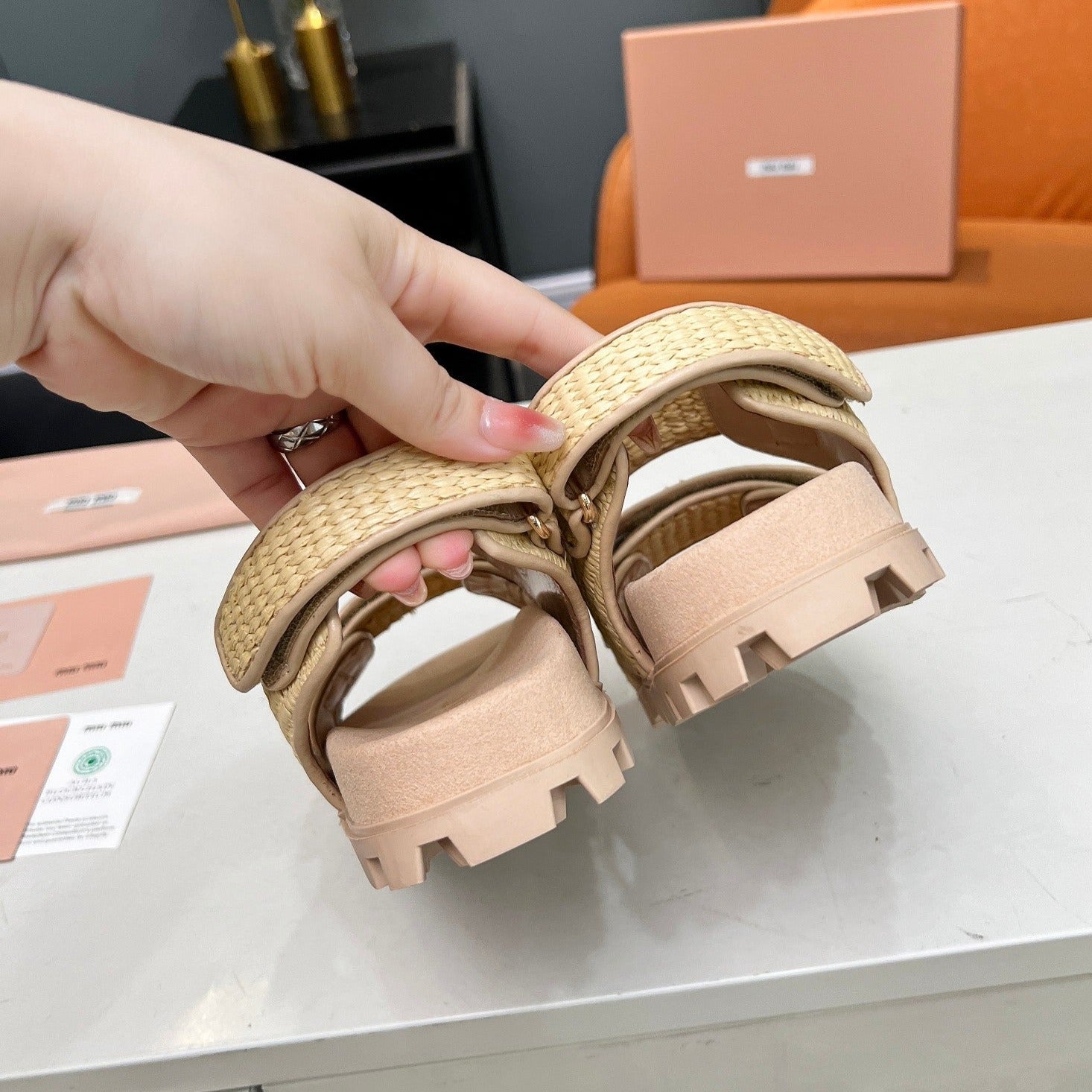 SANDALS CHAMPAGNE SHEEPSKIN WITH 2 HORIZONTAL STRAPS